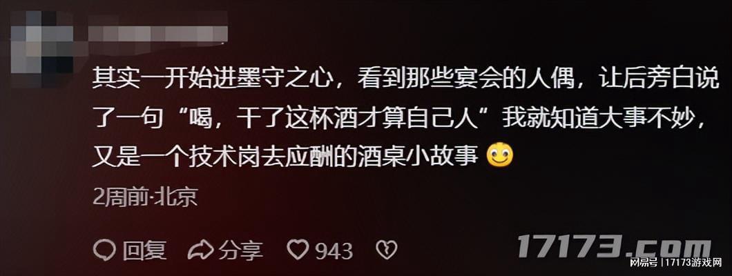 又是什么样的NPC台词,能让三十岁的中年社畜眼泪哗一下就落下来,想到了上周陪领导喝到胃出血的自己;